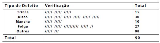 Exemplo: Numa peça de azulejo, os tipos de defeitos após o produto acabado.