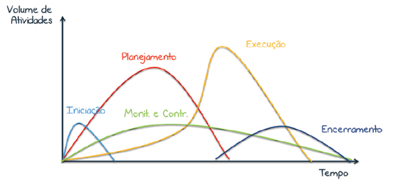 Embora a impressão passada pelas figuras, o ciclo de vida dos processos de gerenciamento de projetos não é linear.